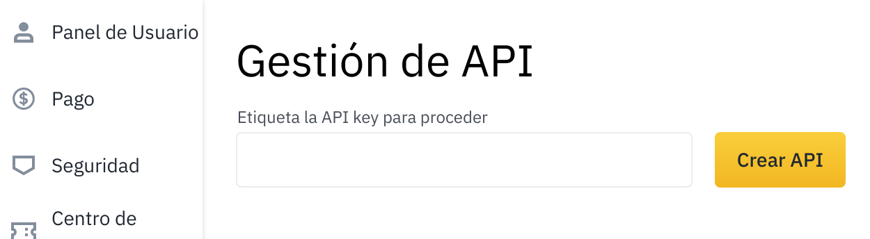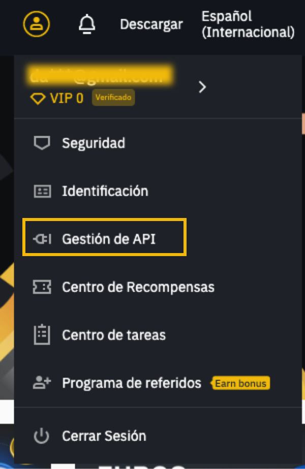 1. Inicie sesión en Binance y navegue hasta el icono personal y seleccionamos la opción Gestión de API