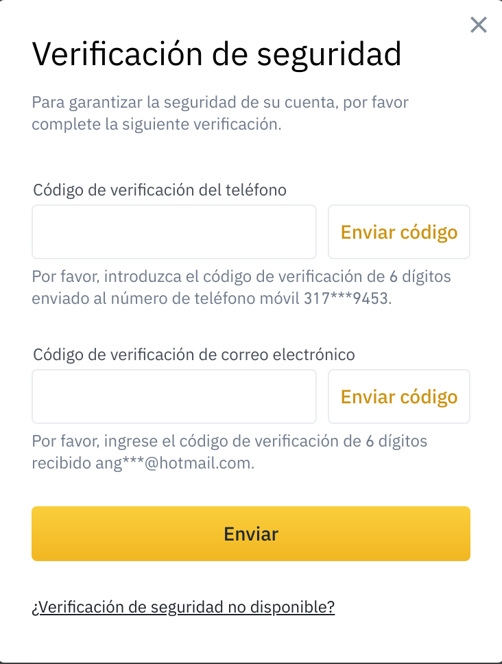 Al darle clic en el botón crear API, nos solicitan los códigos de verificación, los ingresamos y damos clic en enviar