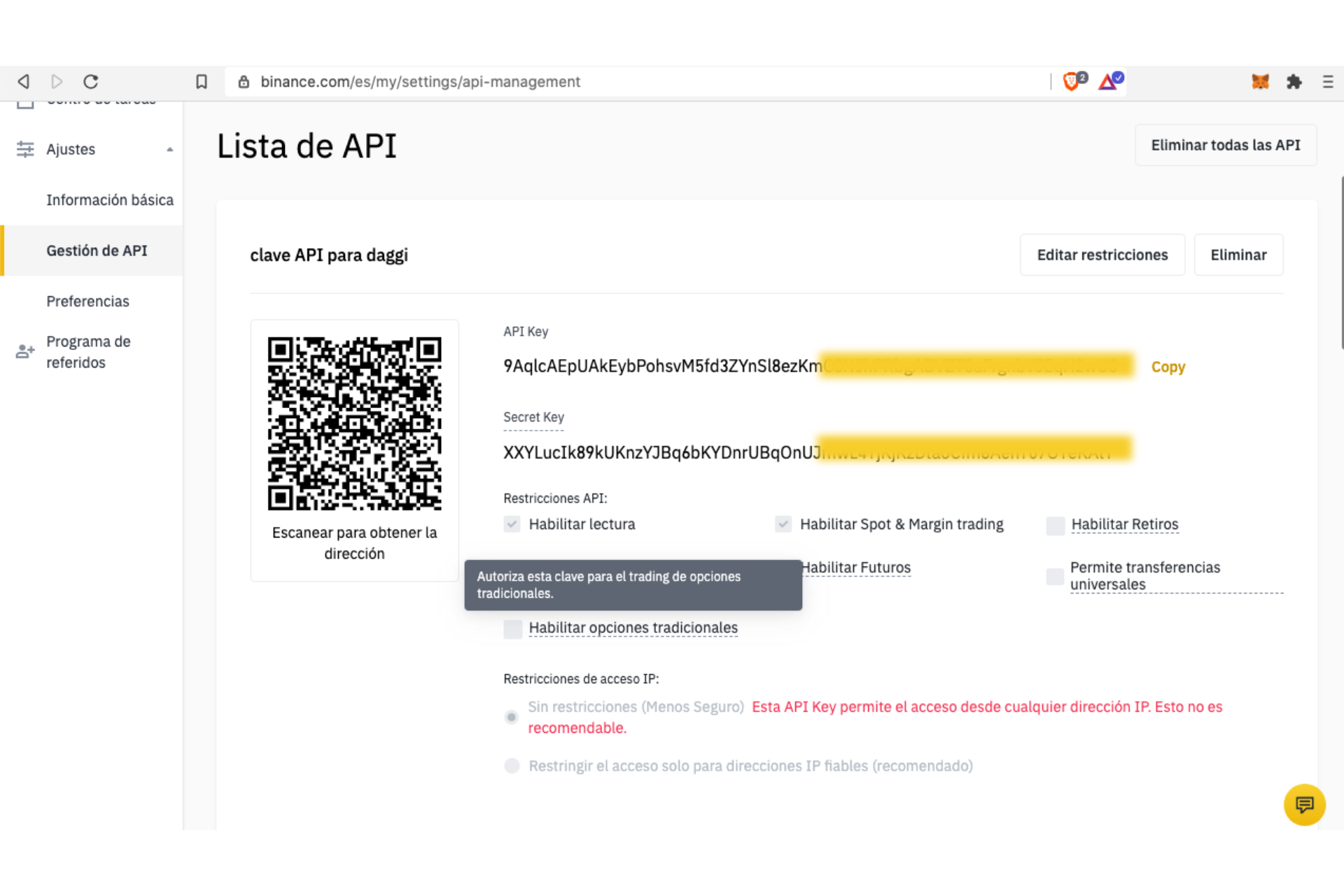 Este artículo servirá para los usuarios que deseen conectar su cuenta Binance a daggi y asumieron que su cuenta de Binance ya está financiada con cierta cantidad de USDT